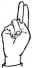 На ћирилици написано МИЛАН ГАЋЕ састоји се из 9 слова [?]. Исписано ћириличном једноручном азбуком за глувонеме: